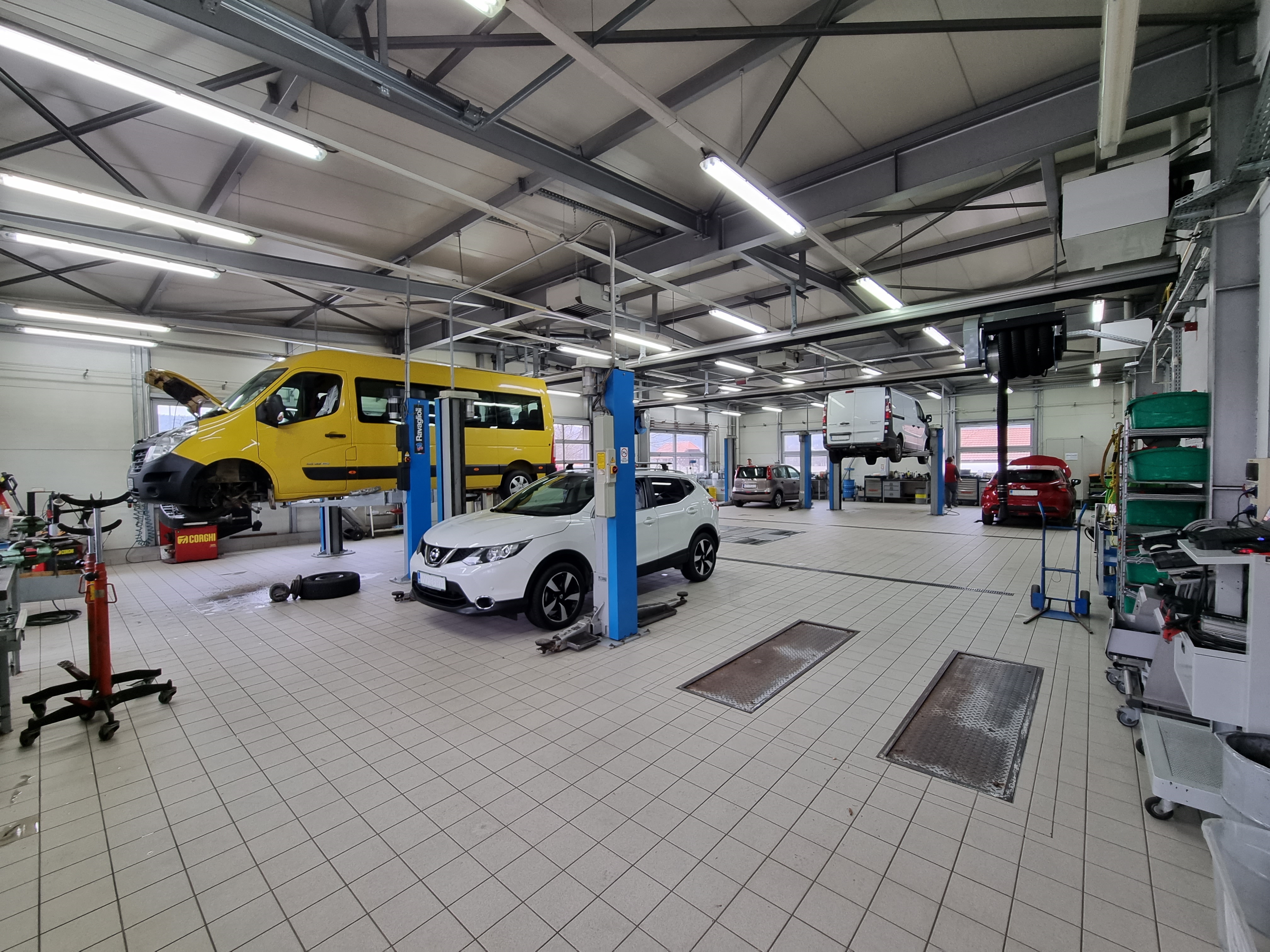 V naših delavnicah smo opremljeni s sodobnim orodjem in pripomočki kot so: diagnostični testerji, testno diagnostična steza podvozja, vzmetenja in zavor, delavniškimi knjigami, specialnim orodjem prilagojenim Nissanovim in Renaultovim modelom itd.